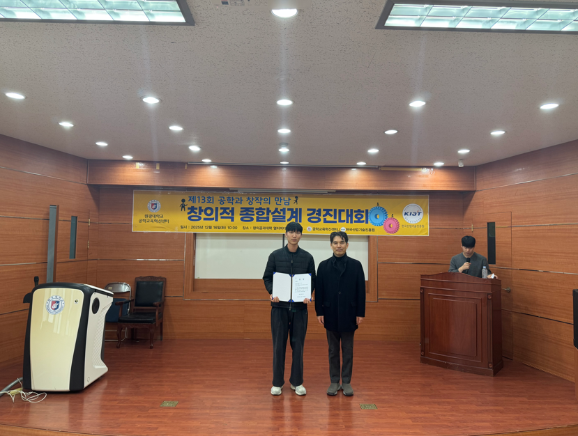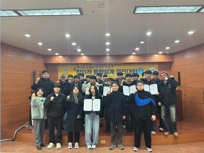 원광대학교 공학교육혁신센터가 주관하는 ‘제13회 공학과 창작의 만남 창의적 종합 설계 경진대회’가 지난 12월 16일 성황리에 개최되었습니다. 본 대회는 공학 계열 학생들의 창의적 문제 해결 능력 및 실무 설계 역량 강화를 목적으로 매년 진행되고 있습니다.